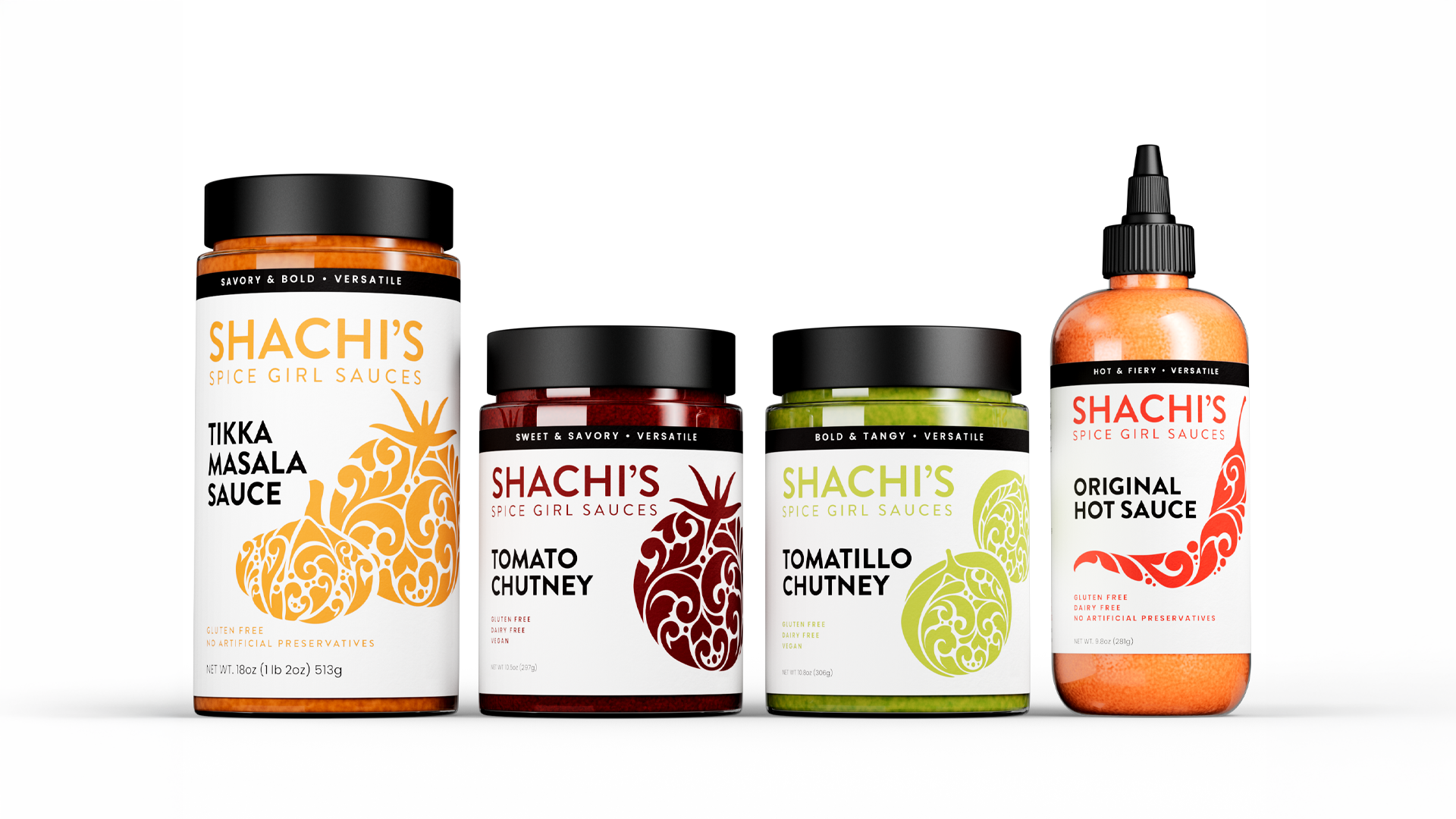 Shachi's Spice Girl Sauces is a founder-led artisan hot sauce brand rooted in Indian culinary heritage and built around the philosophy of balance: in flavor, in heat, and in life. TVB was engaged to bring that story to life from the ground up.